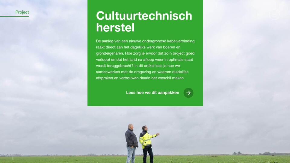 De aanleg van een nieuwe ondergrondse kabelverbinding raakt direct aan het dagelijks werk van boeren en grondeigenaren. Hoe zorg je ervoor dat zo’n project goed verloopt en dat het land na afloop weer in optimale staat wordt teruggebracht? In dit artikel lees je hoe we samenwerken met de omgeving en waarom duidelijke afspraken en vertrouwen daarin het verschil maken.