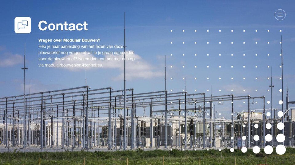 Heb je naar aanleiding van het lezen van deze nieuwsbrief nog vragen of wil je je graag aanmelden voor de nieuwsbrief? Neem dan contact met ons op via modulairbouwenlpn@tennet.eu.